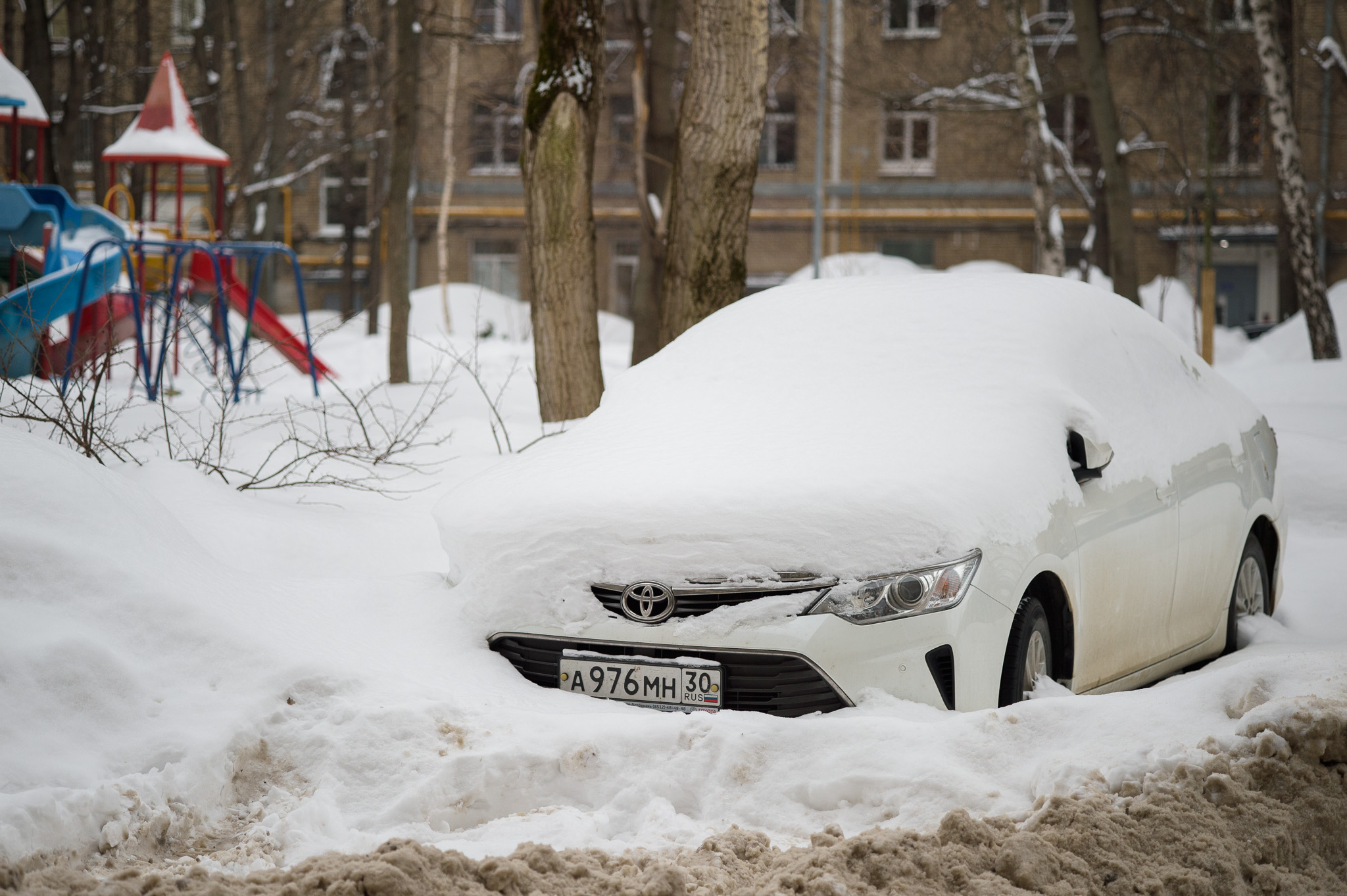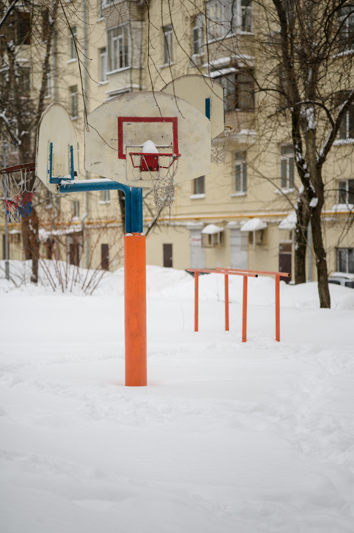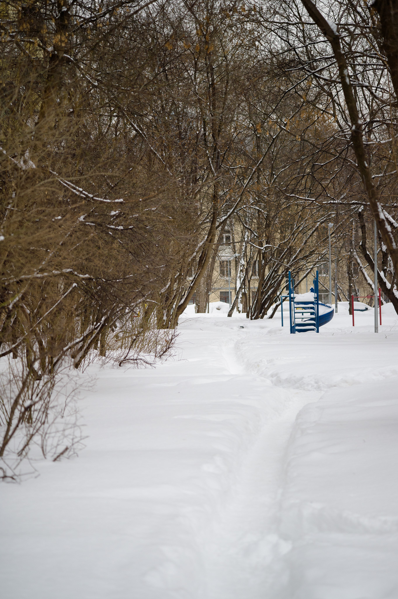 В первой серии фотопрогулок гуляю по заснеженному району Филёвский Парк в Москве. Не туристический маршрут: обычные дворы, детские площадки, припаркованные машины и снег, как он есть.